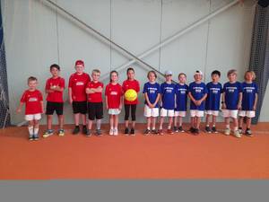 Da dort alle Verbandsspiele der Erwachsenen noch liefen, wurden die U9-Staffeln in die Tennishalle verlegt. In den vier Mannschafts- Disziplinen: Sprint, Rollen, Prellen, Werfen standen sich zwei hoch motivierte und eifrige Mannschaften gegenüber. Alle vier Staffeln gingen jedes Mal knapp an den Gastgeber und unsere U9 konnte alleinig die Bonuspunkte einsammeln.