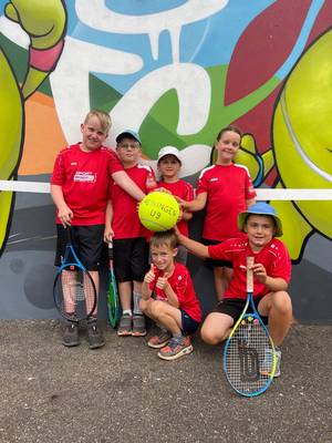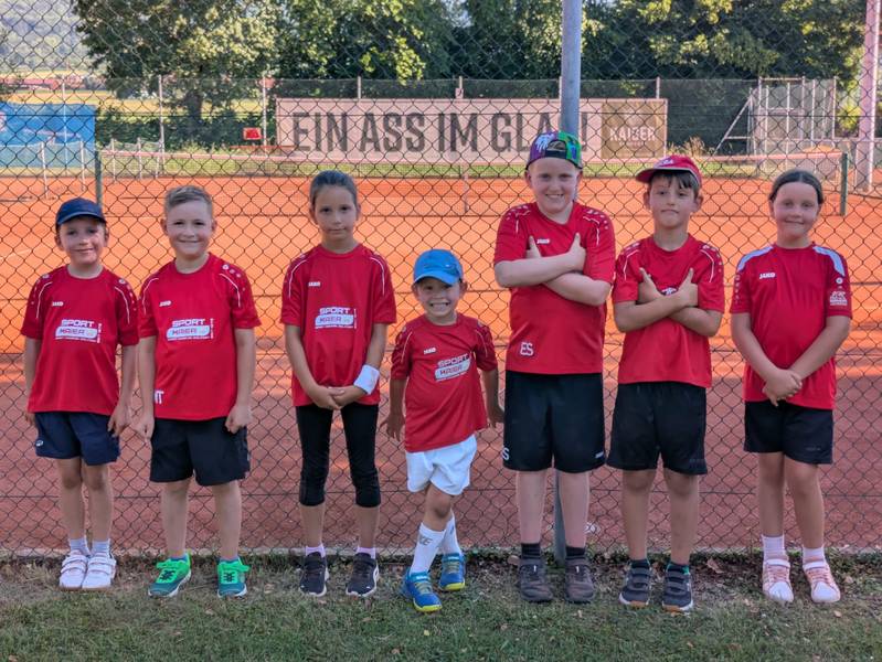 Bei strahlendem Sonnenschein und großer Hitze spielte unsere U9-Tennismannschaft ihr erstes, sehr spannendes Heimspiel – für viele der Kinder war es sogar das allererste Mal, dass sie bei einem richtigen Mannschaftsspiel dabei waren!