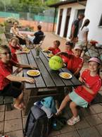 Nach dem gemeinsamen Abschlussessen durften sich alle Kinder auf dem großen U9- Tennisball mit ihrem Namen verewigen. Es wurde noch auf der Wiese und dem Spielplatz gemeinsam gespielt, bevor die Heimreise angetreten wurde.